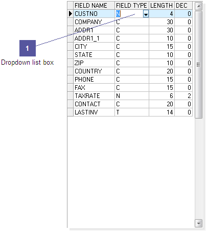 Change the field type by selecting a type from the dropdown list box. The Length and Dec columns also allow you to change the information.